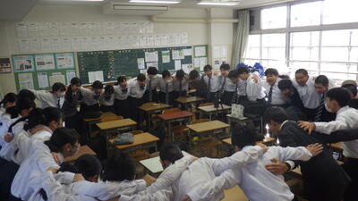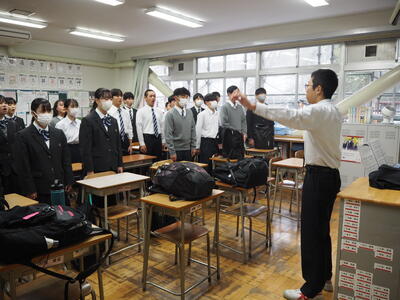 10月22日、朝、表彰と生徒会任命式を行いました。