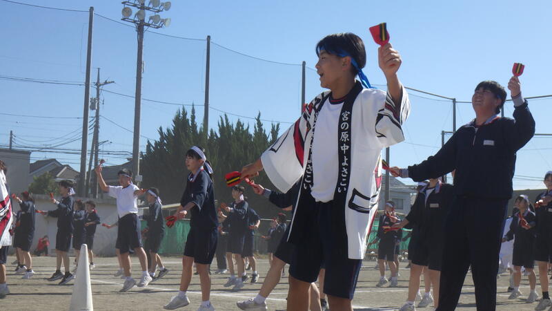 11月12日、絶好の体育祭日和です。快晴の下、宮の原中学校の体育祭が盛大に開催されました。