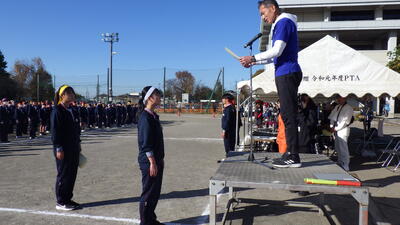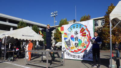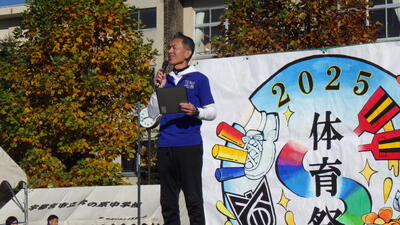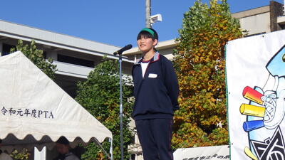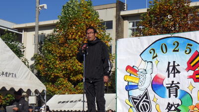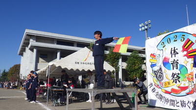 体育祭当日は、PTA阿部会長様に旗ふりをお願いしています。