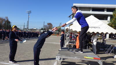 11月12日、絶好の体育祭日和です。快晴の下、宮の原中学校の体育祭が盛大に開催されました。