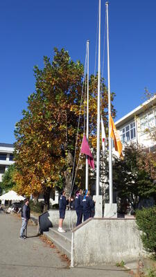 全体指揮係 ~国旗・校旗・市旗の掲揚と後納