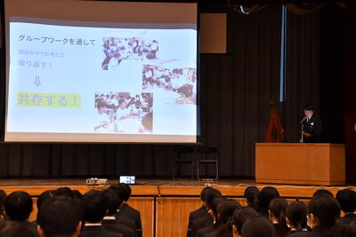 知事メッセージ代読 (学年主任 田城先生)