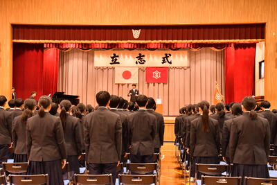 立志式とは「志を立てる」ことを通して、自分の将来や生き方について考える大切な節目の行事です。生徒一人ひとりがこれまでの自分を振り返るとともに、これからどのような目標を持ち、どのように成長していきたいのかを見つめ直す機会となります。