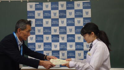 10月22日、朝、表彰と生徒会任命式を行いました。
