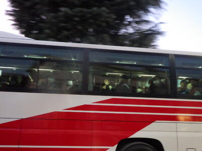 1年と3年の先生方が、正門前やその先の路上で交通誘導や見送りをしてくれました。