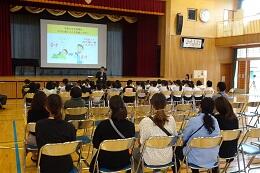 12月4日(木)に,宇都宮市保健所の方2名と食品衛生協会「手洗いマイスター」の方3名にお越しいただき,1年生を対象に「手洗い教室」を実施しました。指と指の間や手首,爪の部分など,どのように洗ったら汚れや雑菌がよく落とせるかなど,実践を踏まえながら教えていただきました。最後に,映像に合わせて「あわあわ手洗いの歌」を歌いながら,丁寧に手を洗いました。今日教えていただいたことをこれから毎日実践し,かぜやインフルエンザを予防していきたいと思います。