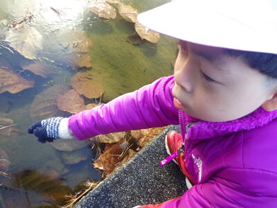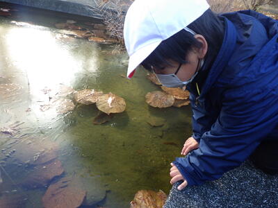 学校の庭に霜柱が出来たり,池の水が氷るようになったので,観察をしてきました。