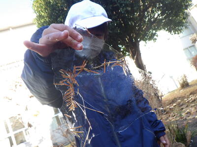 校庭で冬の体験をしてみました。