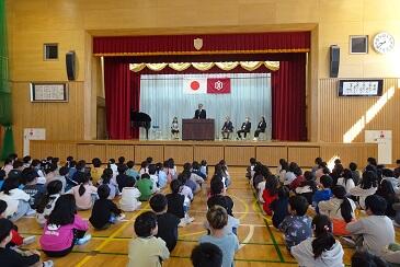 いよいよ令和8年度が始まりました。4月8日(水)に,着任式と始業式を行いました。今年度は,新たに8名の教職員が着任し,6年生の代表児童が「お迎えの言葉」をお伝えしました。始業式では,3年生と6年生の代表児童が,今年度頑張りたいことについて,大変素晴らしい発表を行いました。その後校長先生から「新年度の目標」「あいさつ」「友達のよさを見つける」の3つについて話がありました。最後に担任発表・職員紹介をし,新しい先生方やお友達と令和8年度がスタートしました。