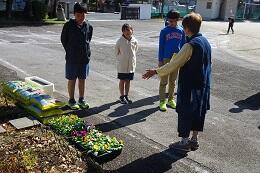 10月27日(月)に,人権擁護委員の方にお越しいただき,「人権の花」を贈呈していただきました。栽培委員会の6年生児童4名が,本校の代表として受け取り,育て方などを教えていただきました。この後,委員会活動でプランターに植え,昇降口等に飾り育てていきます。花を育てるとともに,互いの人権を大切にする気持ちも育てていきたいと思います。