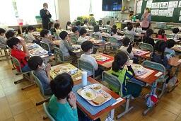 今日(4/16)から,1年生の給食が始まりました。小学校に入学して初めての給食ですが,配膳の仕方や待っているときの姿勢など,ルールや約束をしっかりと守ることができました。今日のメニューは,ツナトースト・ミートボールとやさいのカレーに・ゆでやさい・牛乳です。皆さん,とてもおいしそうに食べていました。小学校生活にも少しずつ慣れ,楽しく勉強や活動に取り組んでいます。