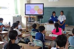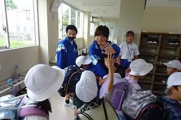 先日お知らせしました「宮っ子チャレンジ」が,本日終了しました。6時間目には,本校の6年生に向けて「中学校の生活の様子」について発表しました。小学校との勉強の違いや部活動の様子,中学校の生活のきまりなど,6年生に分かりやすく説明してくれました。6年生からの質問にも一つ一つ丁寧に答えてくれました。また,1~3年生の下校の際には,互いに名残惜しそうに別れる姿が見られました。5名の生徒の皆さん,本校で経験したことを今後の中学校生活で生かしていってください。5日間,お世話になりました。