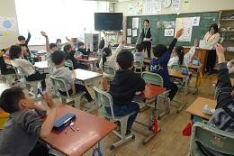 3月17日(火)に,「自分の食事を振り返ろう」というめあてで,学校栄養士が担任とともに3年生を対象に授業を行いました。本日の給食「トマトカレーライス」「ゆでやさい」「牛乳」の食材をもとに,「赤(肉・魚)」「黄(炭水化物)」「緑(野菜・海藻)」の3色食品群を,毎食意識してバランスよく摂取することの大切さを学びました。健康的な体の成長のために,今後も給食の時間を充実させていきます。