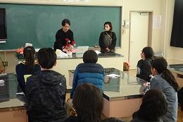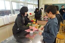2月16日(月)に,6年生が社会科の授業「室町文化を体験しよう」で,フラワーショップ花亀(本校地域協議会長)様にお越しいただき,華道体験(フラワーアレンジメント作り)を行いました。グループに分かれ,互いに意見を交わしながら思い思いに作成しました。一つとして同じものはなく,各グループとも素敵なアレンジメントが完成しました。作ったものは6年生からの素敵なプレゼントとして,メッセージとともに1~5年生のクラスに届けます。6年生の皆さん,ありがとうございました。