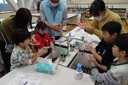 12月4日(木)に,宇都宮市保健所の方2名と食品衛生協会「手洗いマイスター」の方3名にお越しいただき,1年生を対象に「手洗い教室」を実施しました。指と指の間や手首,爪の部分など,どのように洗ったら汚れや雑菌がよく落とせるかなど,実践を踏まえながら教えていただきました。最後に,映像に合わせて「あわあわ手洗いの歌」を歌いながら,丁寧に手を洗いました。今日教えていただいたことをこれから毎日実践し,かぜやインフルエンザを予防していきたいと思います。