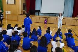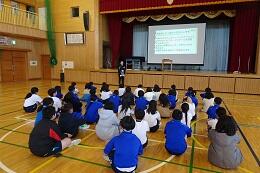 2月19日(木)に,スポーツスクール会社の方々にお越しいただき,5年生を対象に「宮っ子『夢』教室」を実施しました。スイミングやテニス,空手,クラシックバレー,ダンスなどのスクールを通して,「心身の健康」を目標にしていることや,利用している方が「運動を快適に続けられる」ように,お手伝いをしていることなどを教えていただきました。後半はダンスを教えていただき,音楽に合わせてみんなで楽しく踊りました。