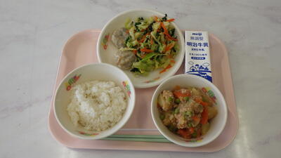 2月12日献立 投稿日時 : 15:41 宮の原小学校管理者 麦入りご飯 にらまんじゅう さっぱりあえ じゃがいものそぼろ煮 牛乳 麦入りご飯 {{options.likeCount}} {{options.likeCount}}