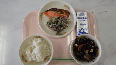 3月10日献立 投稿日時 : 14:08 宮の原小学校管理者 麦入りご飯 銀鮭の西京焼き ゆかりあえ ひじきと大豆の炒り煮 牛乳 {{options.likeCount}} {{options.likeCount}}