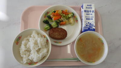 麦入りご飯 ハンバーグ ゆで野菜