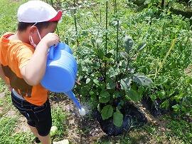 トマトも早く採りたい様子でしたが,「赤くなるまで待ってね。」と言うと,「早く赤くならないかなぁ~。」と言いながら,水をあげていました。