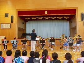 9月19日(木)の昼休みに金管バンド部がミニコンサートを開きました。田村先生の指揮により「ブレイブハート」を含む3曲を演奏し,日頃の練習の成果を発揮することができました。体育館には多くの児童が集まり,楽しんで演奏を聴いていました。26日(木)の「うつのみやジュニア芸術祭」でも頑張ってほしいです。