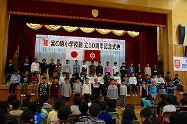 11月15日(金)に宮の原小学校創立50周年記念式典が盛大に行われました。記念式典には,ご来賓,保護者,地域の方々など多くの方々が参列してくださいました。ご来賓の方々から祝辞をいただき,感謝状の贈呈も行われました。記念発表会ではどの学年の児童も一生懸命に発表し,学校の創立50周年をお祝いする気持ちを表現することができました。午後のキャラメルマシーンのスーパーサイエンスマジックショーも大いに盛り上がりました。実行委員をはじめ関係の皆様に感謝申し上げます。