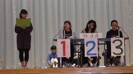 11月27日(水),朝の児童集会で放送委委員会と運動委員会の発表を行いました。放送委員会は,普段の仕事内容をクイズ形式にして楽しく発表しました。運動委員会は,縄跳びの跳び方を5・6年生の委員が実演して見せてくれました。どちらの発表も興味深そうに児童たちは見ていました。