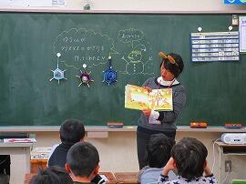 12月20日(金)朝の「おはなしたのしいね」の時間にサプライズの読み聞かせがありました。担任の先生たちがくじ引きをし,他のクラスでクリスマスの本の読み聞かせを行いました。サンタさんやトナカイさんになって登場した先生たちに子どもたちは大喜びでした。