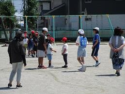 6月19日(水)に,第2回目の「なかよしタイム」を実施しました。今回もドッジボールやドッジビー,だるまさんが転んだ,へび鬼など,班の友達と協力しながら外遊びを楽しみました。気候も暑くなってきましたが,子供たちは元気いっぱいです。熱中症には十分配慮しながら,今後も様々な活動を行ってまいります。
