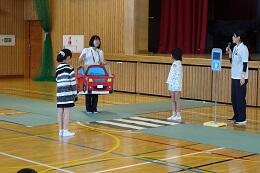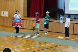 9月24日(水)に,市役所生活安心課交通安全Gの方々に来ていただき「交通安全教室」を実施しました。歩行者や自転車の基本的な交通ルールやヘルメット着用の重要性などについて,映像や実験,クイズなどを交えて分かりやすく教えていただきました。子どもたちは,交通上の場面に潜む様々な危険性について理解するとともに,「相手を思いやる気持ちをもって道路を使う」「飛び出しは絶対にしない」「自転車に乗るときはヘルメットをかぶる」「いつも危険を予測しながら道路を使う」など,4つのことについて意識を高めることができました。