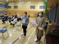 た。修了証授与では,各学年の代表が大きな返事をしてステージで受け取りました。そして,