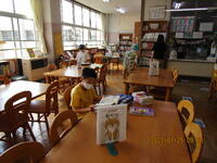 聞き入っていました。今週から「読書祭り」も始まっています。図書室では,「読書ゆうびん」や「読書クイズ」