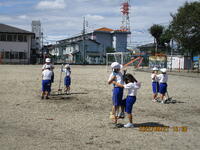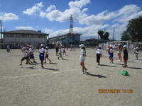 投げる距離は,学年に応じて違います。低学年は近く,高学年になるにしたがって遠くになります。皆,一生懸命に