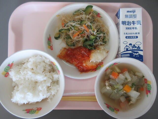 鶏五目御飯 牛乳 白身魚のねぎ塩焼き