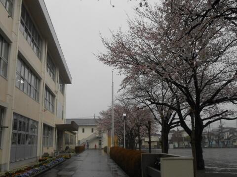 今日は,またもや雨。ひっそりした校庭で,桜もしょんぼりです。