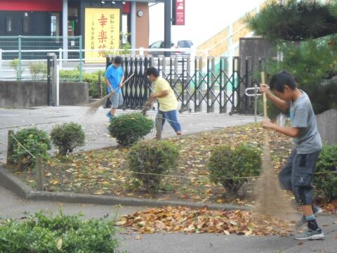 今年はサクラの葉が落ちるのが早く,夏休みの後半から目立って増え始めたと思っているうちに,今は毎日,相当な量の葉が落ちている状況です。毎朝,落ち葉掃きをしていますが,今週から6年生が作業に加わり,作業効率がグンとアップしました。これも去年に比べると,随分早い時期からになります。緑豊かな本校,その恩恵を受けているのですから,掃除もしっかりしないとね。秋から冬にかけて,落ち葉の種類も変わっていき,季節の移り変わりを肌で感じながら,これからも毎朝の作業が続きます。