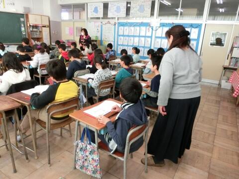 今年も専門のお二人の先生にお越しいただき,3年生のそろばんの授業が行われました。皆,興味津々,そして必死に指を動かします。各学級1時間ずつ,計3時間にわたって,先生方には大変お世話になりました。そろばんの授業は,もう1時間。あさっても引き続いて行われます。