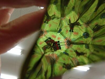 アイロンシートを使って,ビーズなどを入れて作ります。アイロンシートにマジックで色を付けてみたらどうなるだろう!という発想をした子の作品の美しさに,自分もやってみよう!と張り切る子どもたち。いろいろな色のカラフルな万華鏡が出来上がりました!