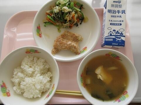 【今日の給食】 大豆仲間のみそ汁 投稿日時 : 2017/10/30 御幸が原小学校 麦入りごはん 牛乳 鶏肉のねぎみそ焼き ごまあえ 厚揚げのみそ汁 {{options.likeCount}} {{options.likeCount}}
