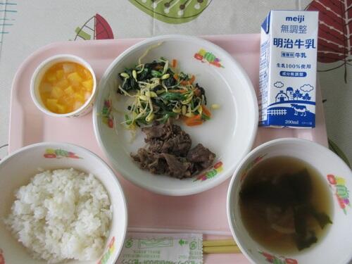 ごはん 牛乳 モロのケチャップあえ 塩こんぶあえ なめこのみそ汁