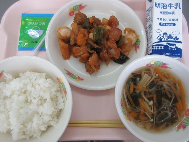 8月27日の給食 投稿日時 : 2021/08/27 御幸が原小学校管理者 <今日の献立>麦入りごはん ふりかけ 牛乳 酢豚わかめスープ<今日の一口メモ> ~酢豚~豚肉や野菜、卵など8種類の食材で作った栄養満点のおかずです。豚肉は体の疲れをとる働きをしてくれる食べ物です。 {{options.likeCount}} {{options.likeCount}}