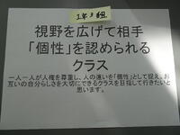 クラスで話し合ったこと,本日の集会で他のクラスの発表も聞いてさらに人権意識を高め,いじめのない学校を作っていこうという意識を高めることができました。