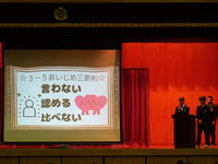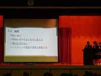 本校の学校スローガン「つながる 優しさ 思いやり たくましさ」に沿って,各クラスで話合ったスローガンの発表を行いました。