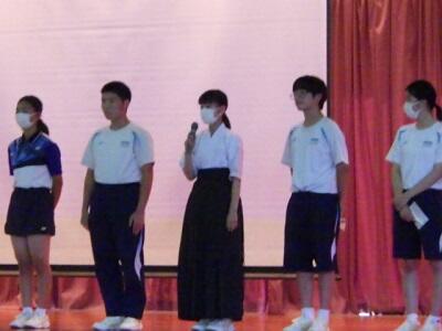 1年生代表 工藤さんからは,勉強と部活動のバランスを丁寧に行う。周りに感謝すること,