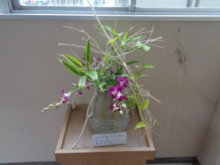 昨日、地域協議会生け花ボランティアの先生が来校し、生け花を新しくしていただきました。今回はクリスマスのイメージだそうです。とても素敵な生け花なので、ぜひ、来校時に見てください。