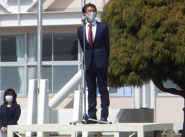 ↑磯先生から、「黙動」をはじめとする集団行動の重要性についての話をしました。生徒の皆さんには、夏休みに向けて気を引き締めて生活してほしいと思います。