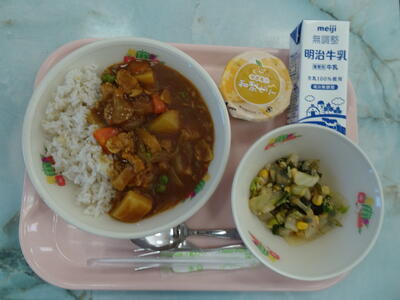 ポークカレー・蒟蒻サラダ・和梨ゼリー・五穀ごはん・牛乳