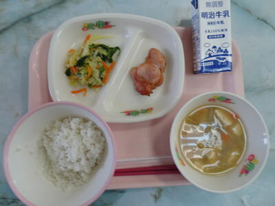 鶏肉の香味焼き・ゆで野菜・味噌けんちん汁・麦入りご飯・牛乳