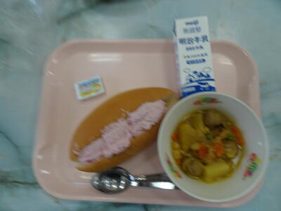 セルフいちごクリームサンド・牛乳・肉団子と野菜のカレー煮・チーズ