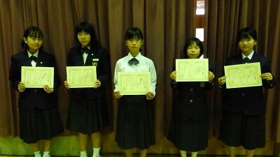 入所式です。センターの方から、3つ、目配り、気配り、心配りを意識して、「広げよう!仲間と作る「絆の輪」」を達成しようと話をいただきました。